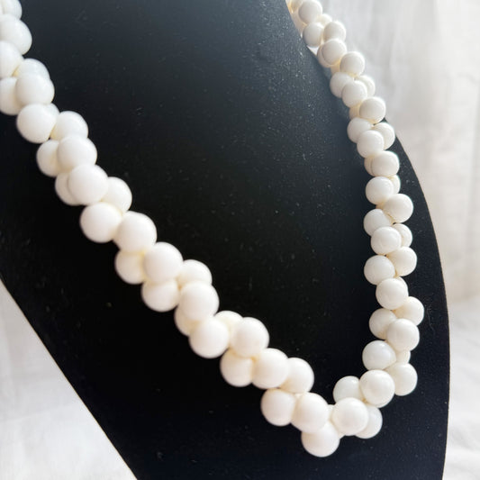 Vintage White Beaded Cluster Necklace