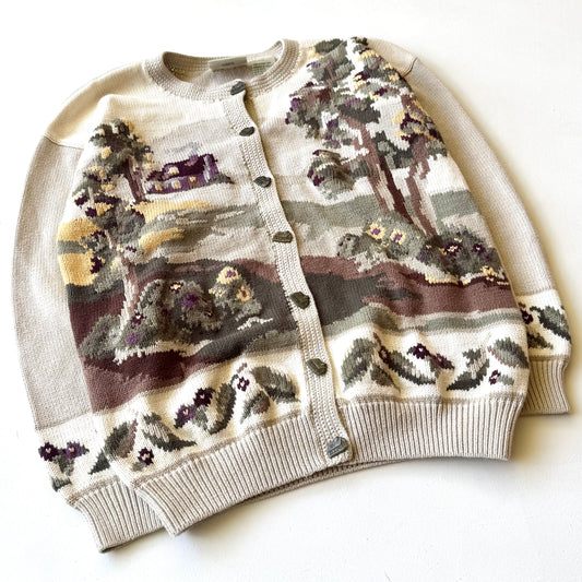 Vintage Northern Reflections, Nature Cottage Scene Cardigan