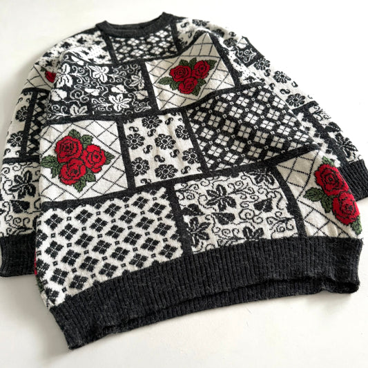 Vintage Patchwork 80's Style Rose Sweater
