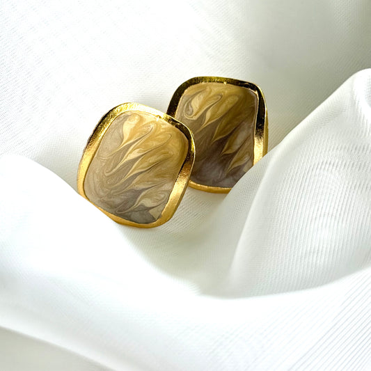 Secondhand Gold Toned and Ivory Coloured Earrings
