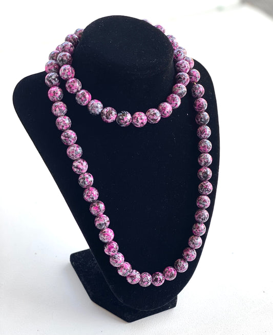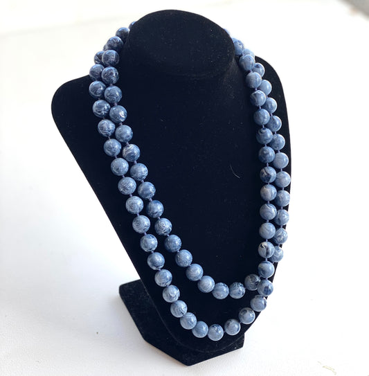 Sold outMarbled Blue Beaded Vintage Necklace