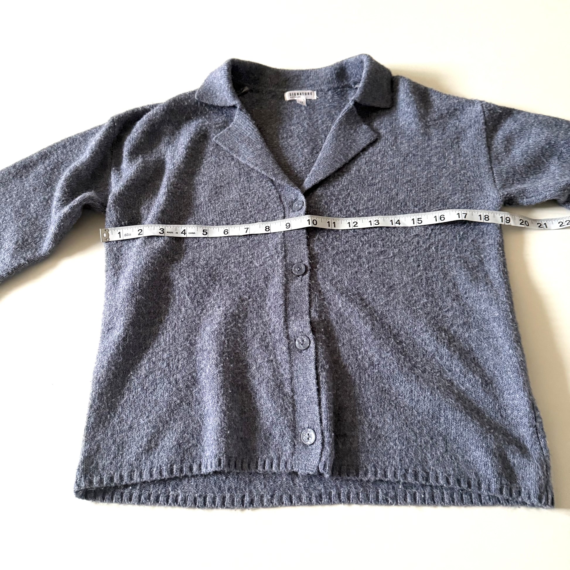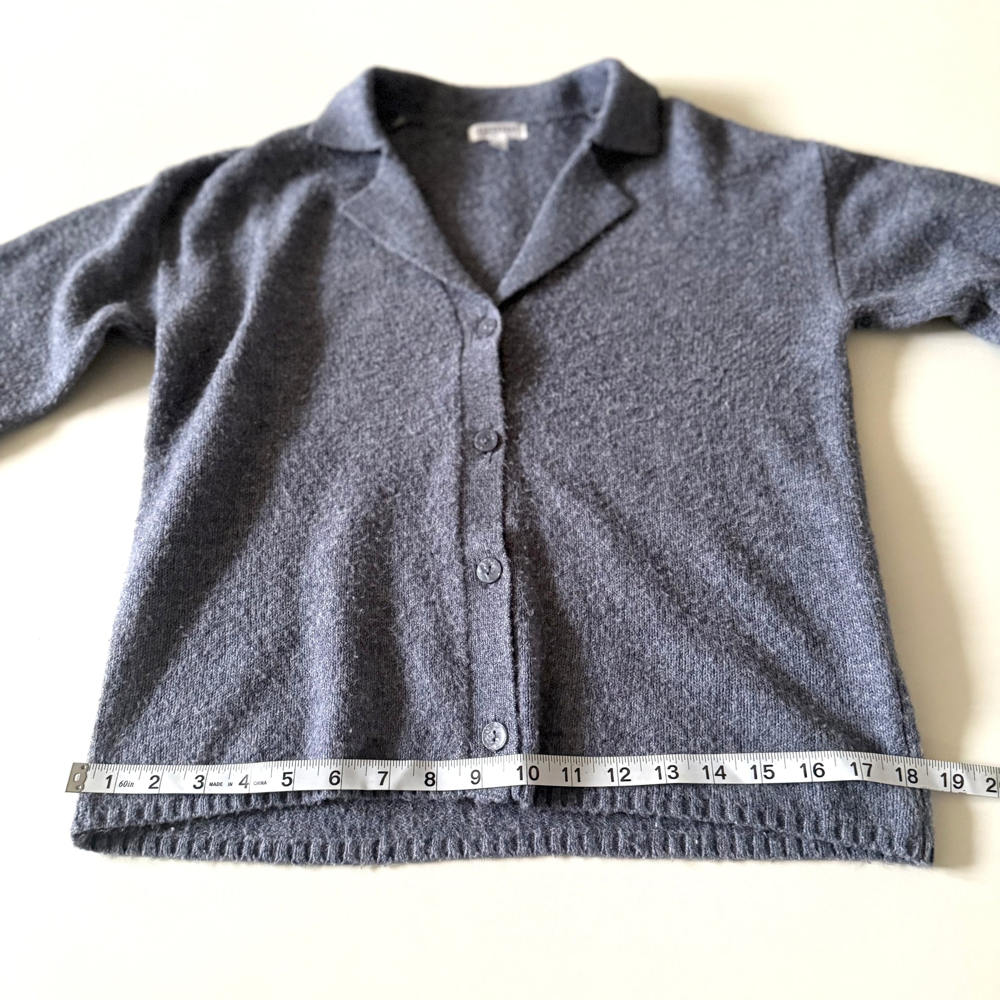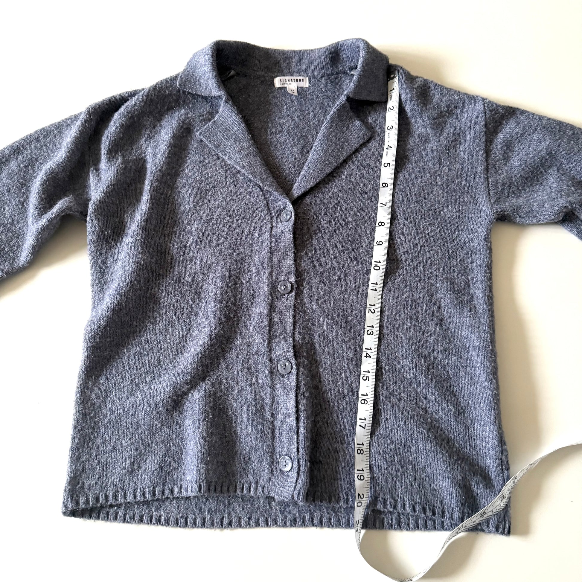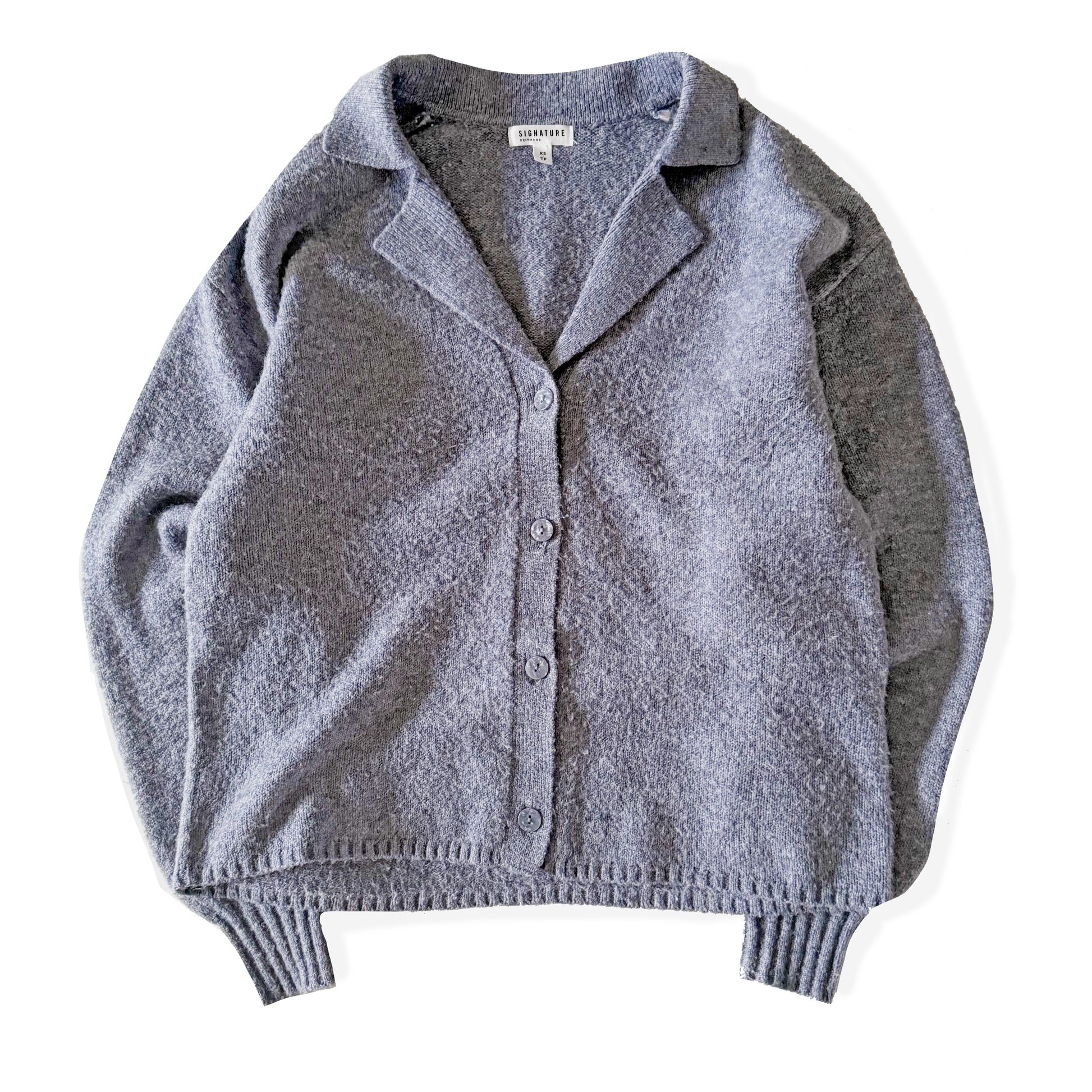 Secondhand blue/grey cardigan, with a collared detail. This sweater is from Signature by Reitmans.