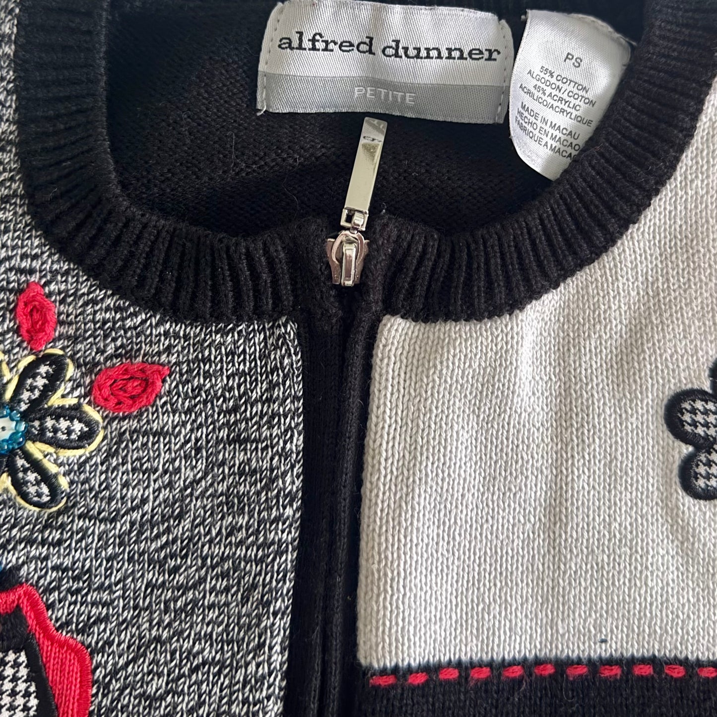 Secondhand Alfred Dunner Petite Shoe & Bag Patchwork Cardigan Sweater