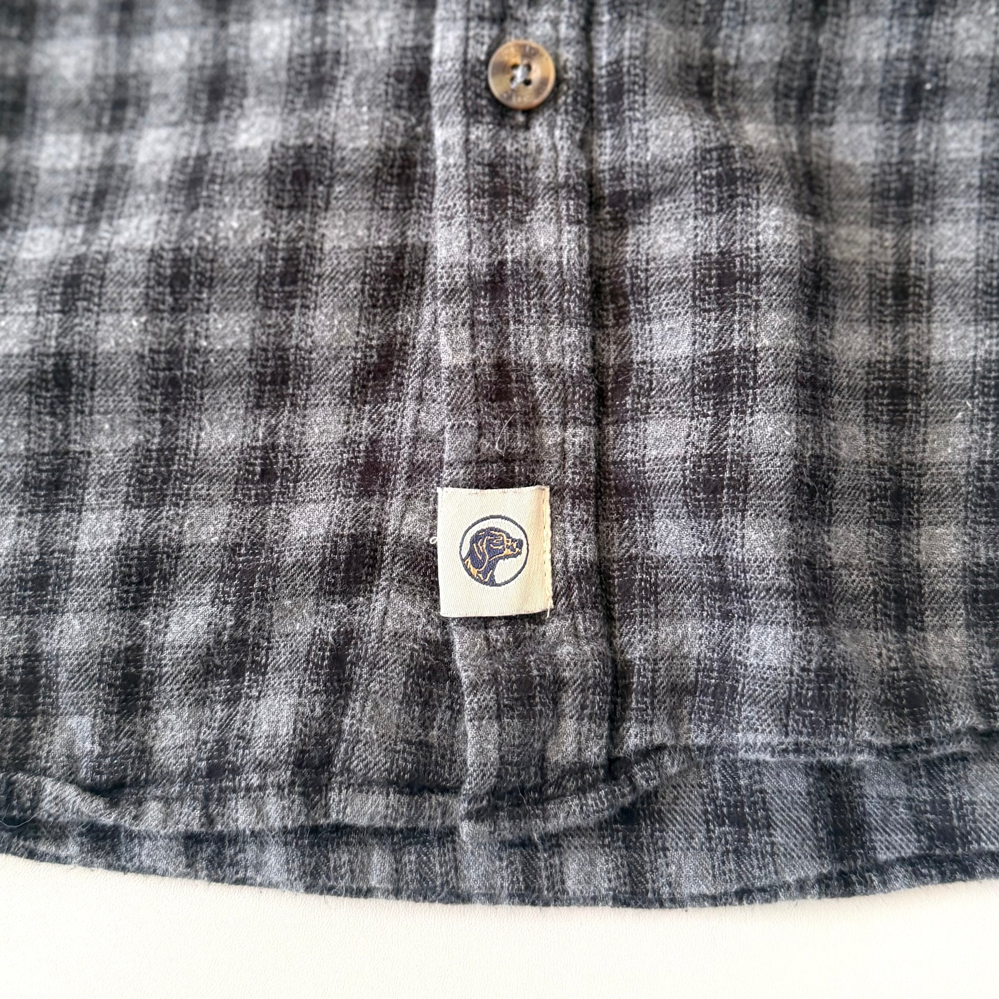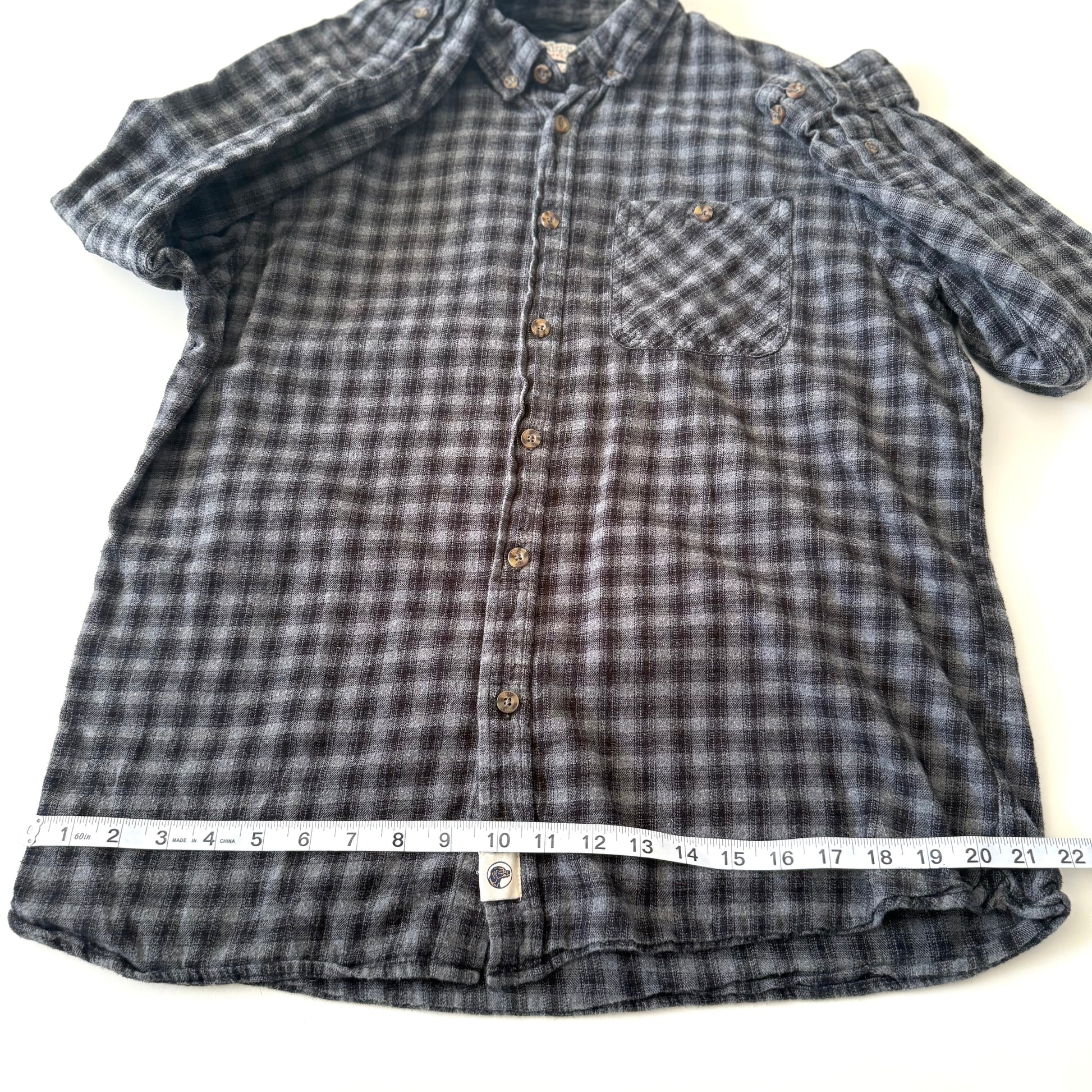 Secondhand black and grey button down shirt.
