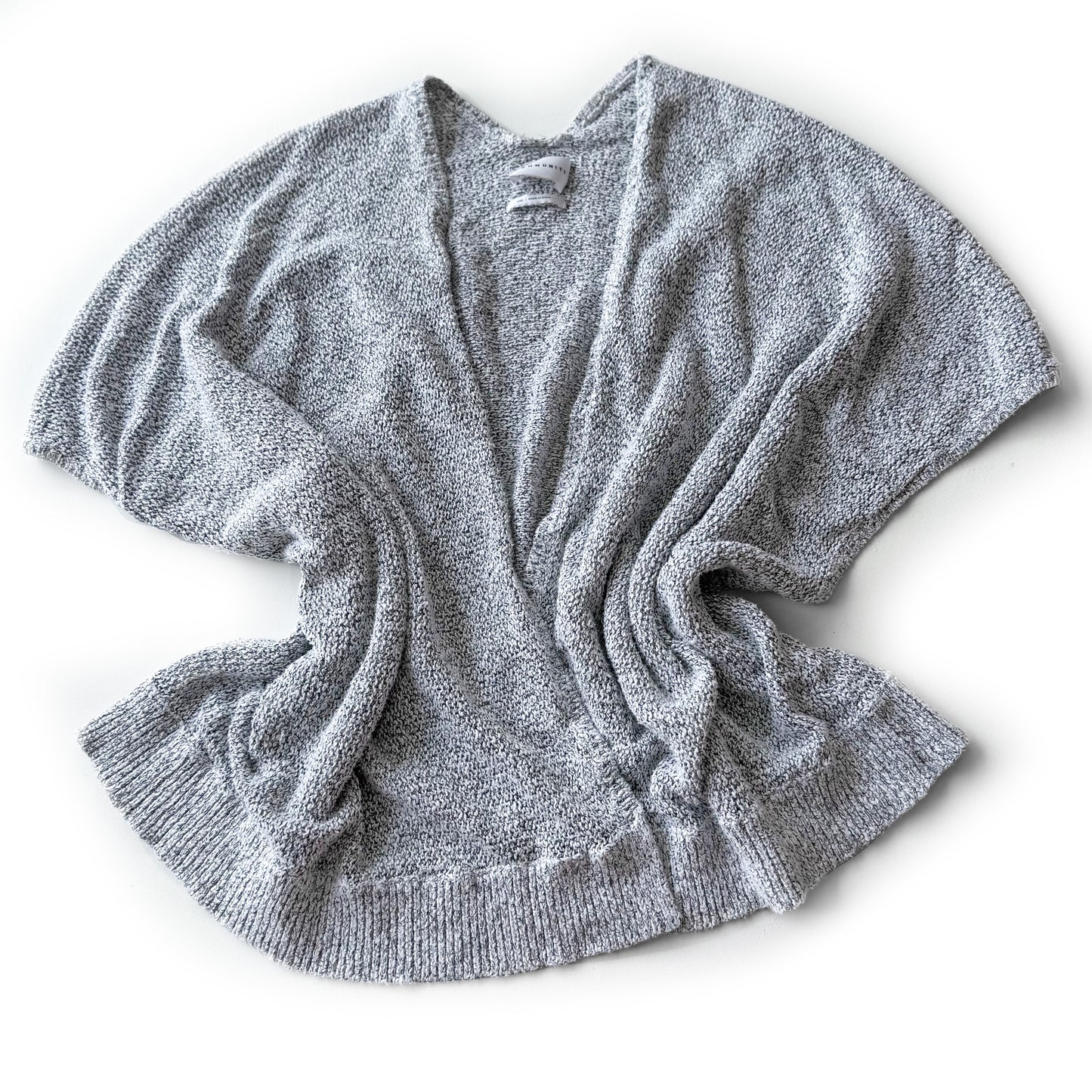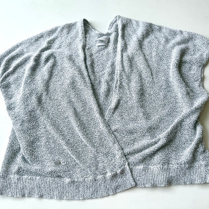 Secondhand Artizia Brand: Community, open front (no closure) grey sweater in a batwing shrug style. Measurements below are done with the opening placed together. Due to the nature of this sweater it could be worn up to a women's size MEDIUM. It just depends on if you want it tighter or looser.