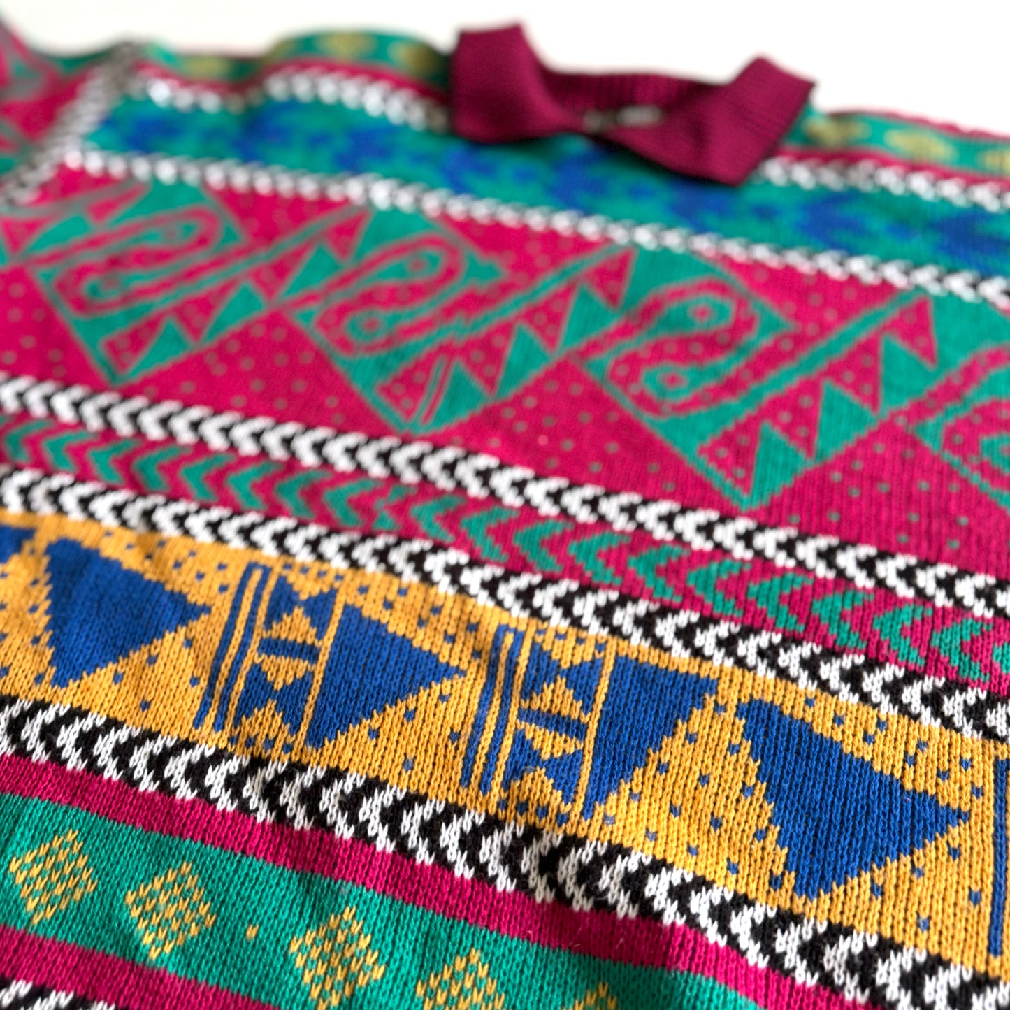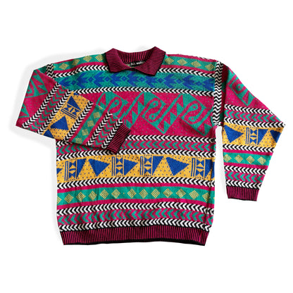 Vintage collared sweater, in a 90's bold / bright coloured pattern.