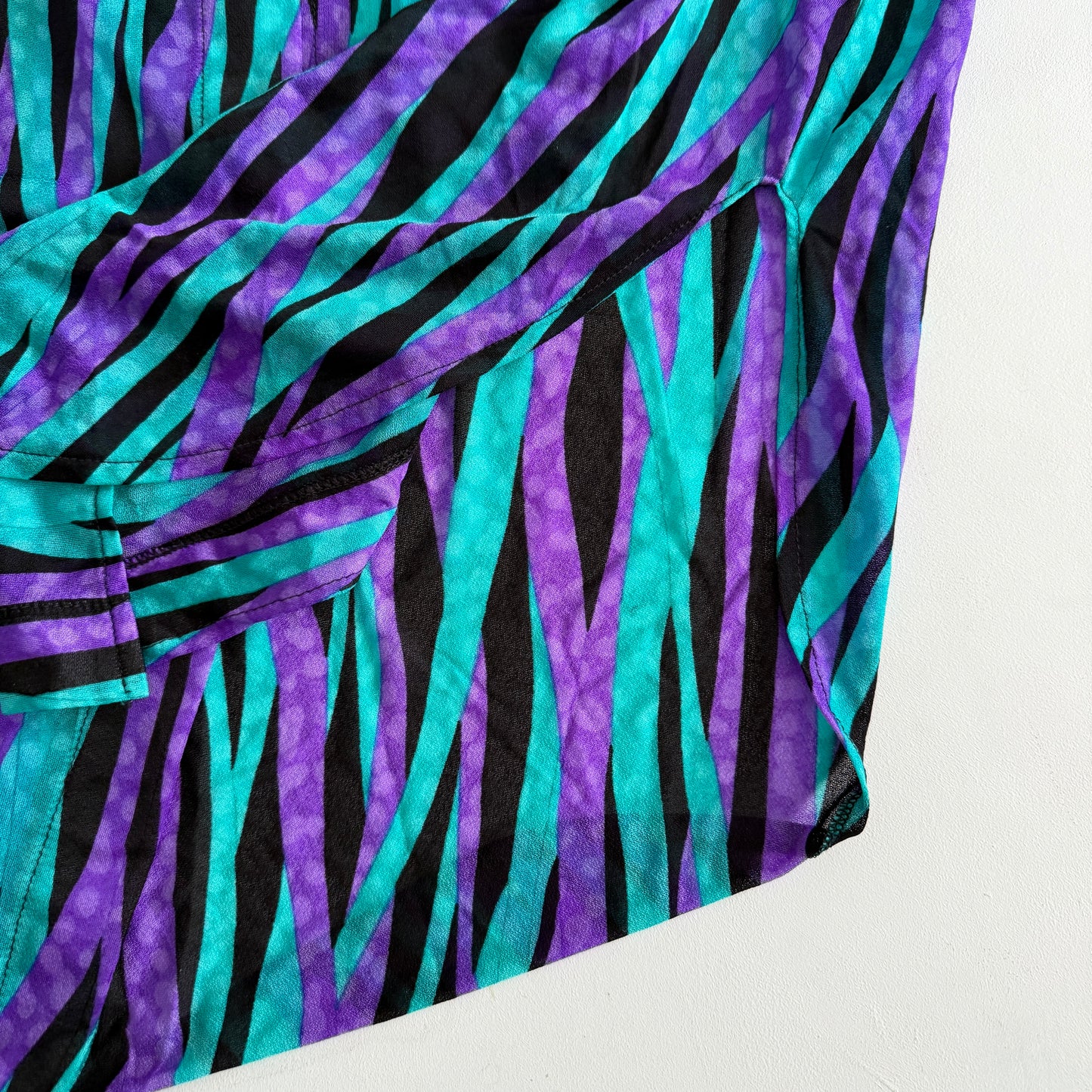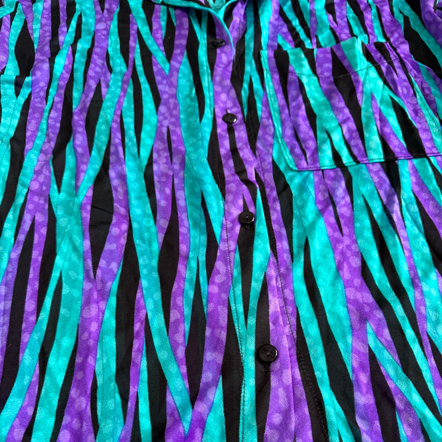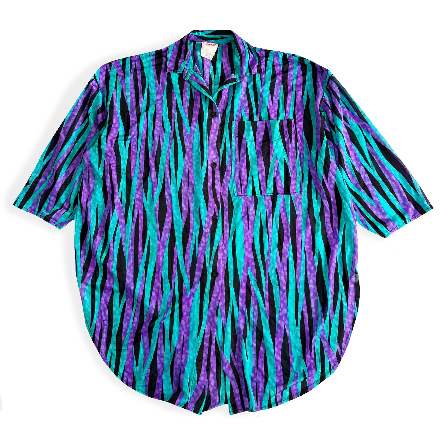 Vintage long button down shirt, in neon 80's & 90's patterns. The sides of the shirt have a split that goes 14" up.