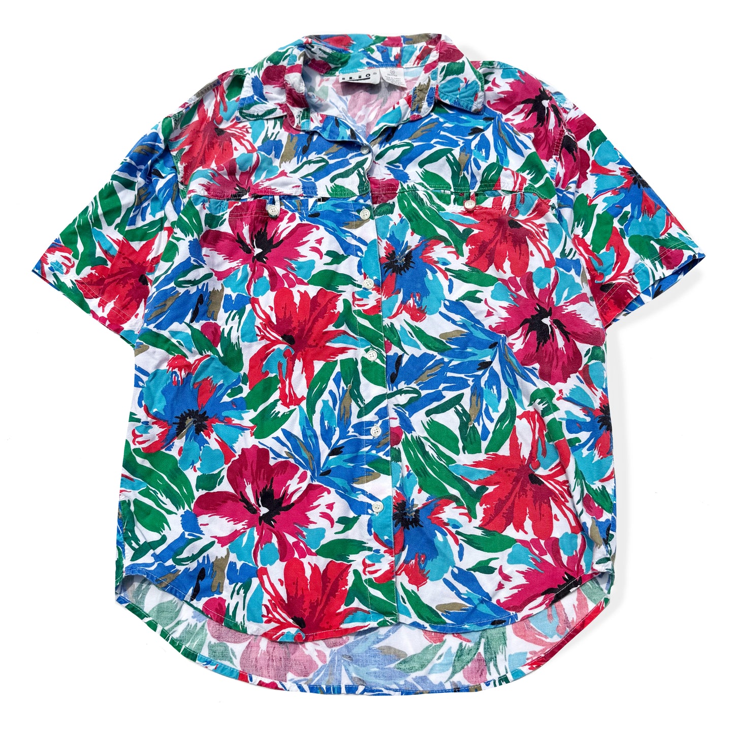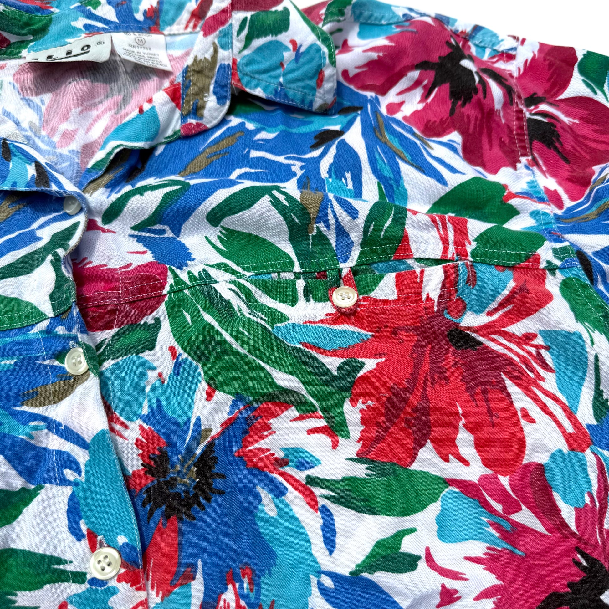 Vintage 90's style tropical patterned, button up short sleeve shirt.