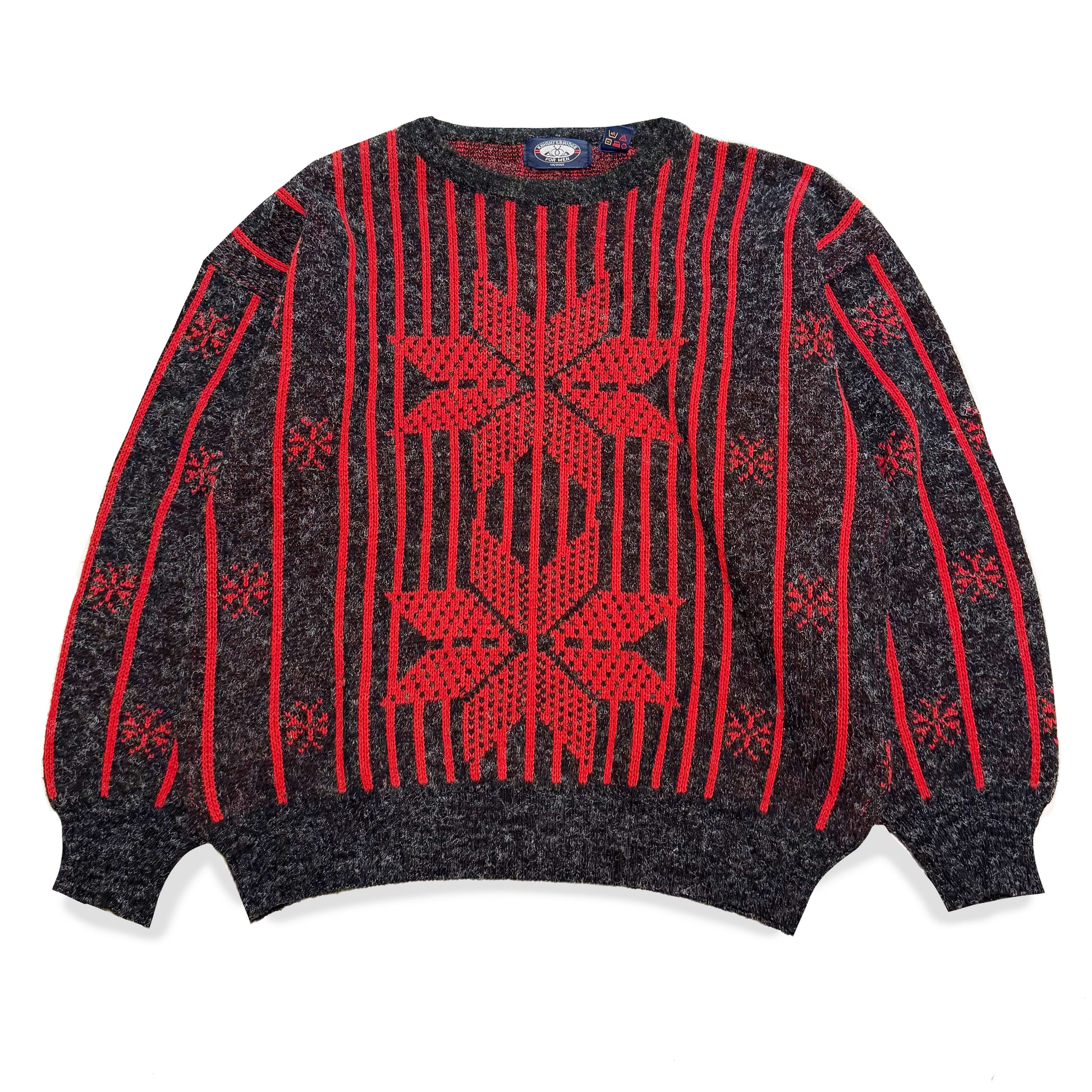 Vintage knitwear sweater with a star / snowflake pattern and vertical stripes.