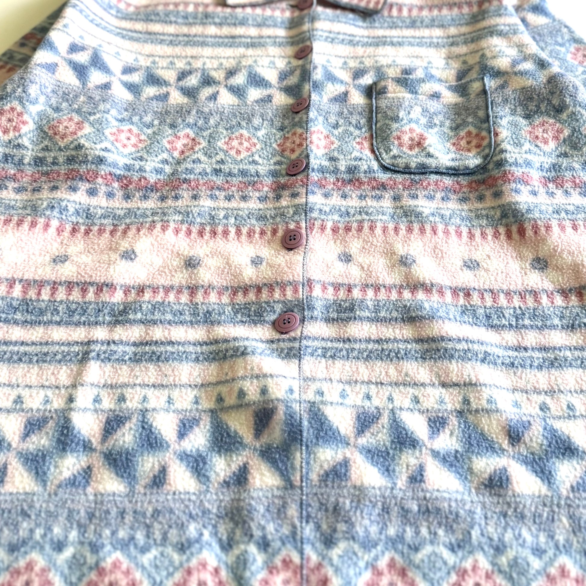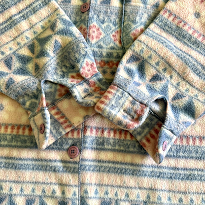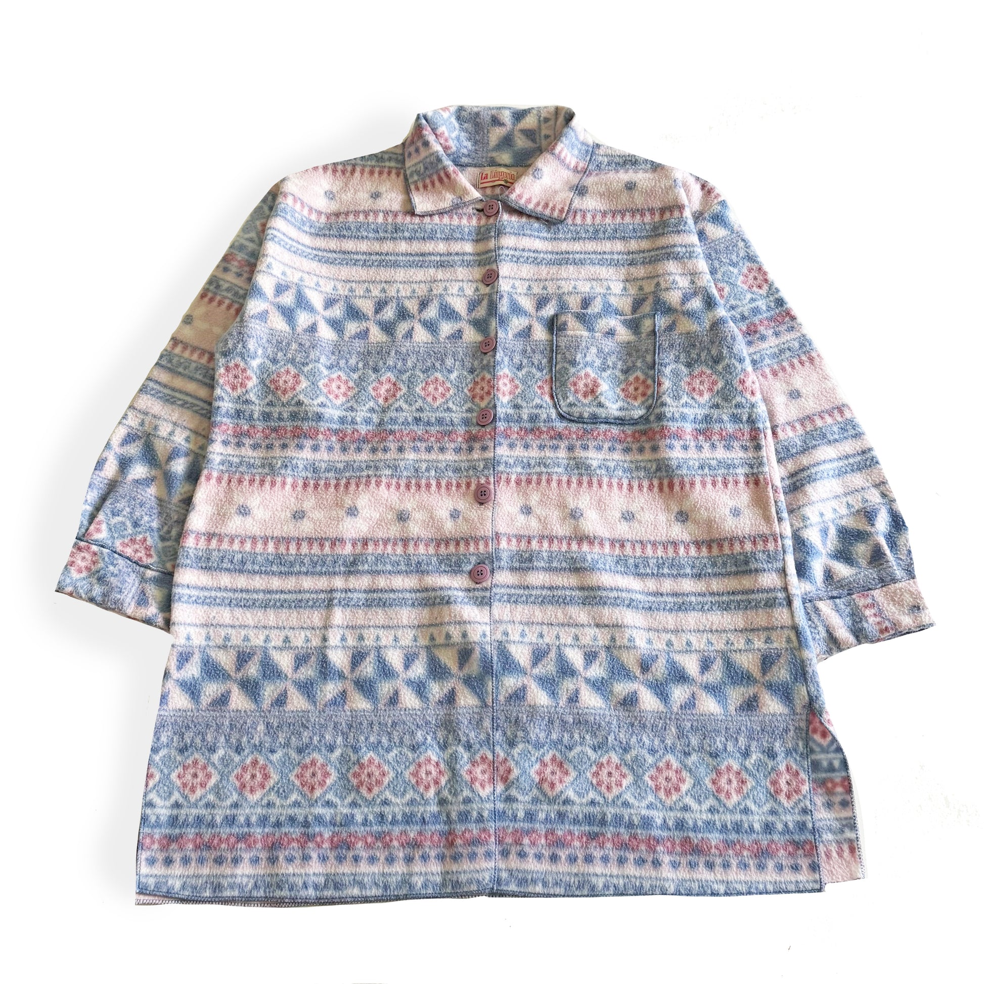 Vintage long button up shirt, with a floral flannel style pattern in pastels. Based on the name of the brand (La Lingerie) this is assumed to be originally intended as a pajama shirt. Though that doesn't mean it couldn't be worn as a cute spring cardigan.