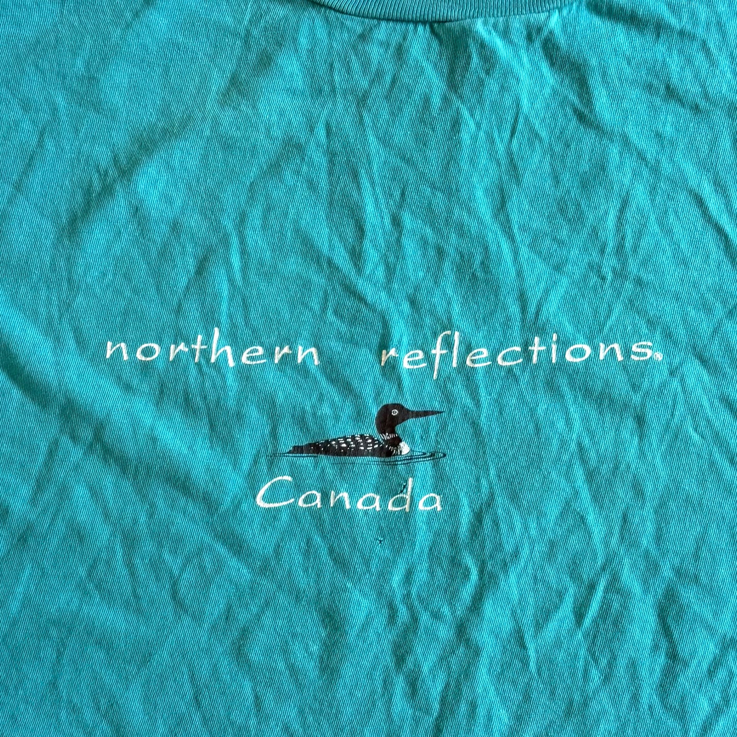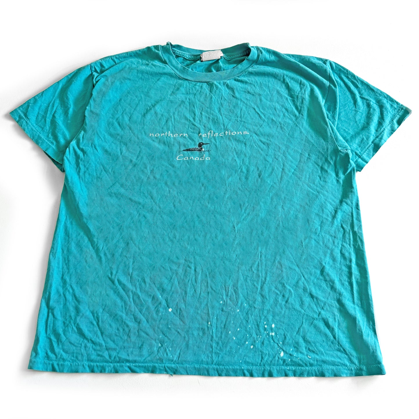 Vintage sweater with the loon Northern Reflections logo on the front. There is bleaching along the bottom that could be cropped off or bleach dyed to incorporate it.