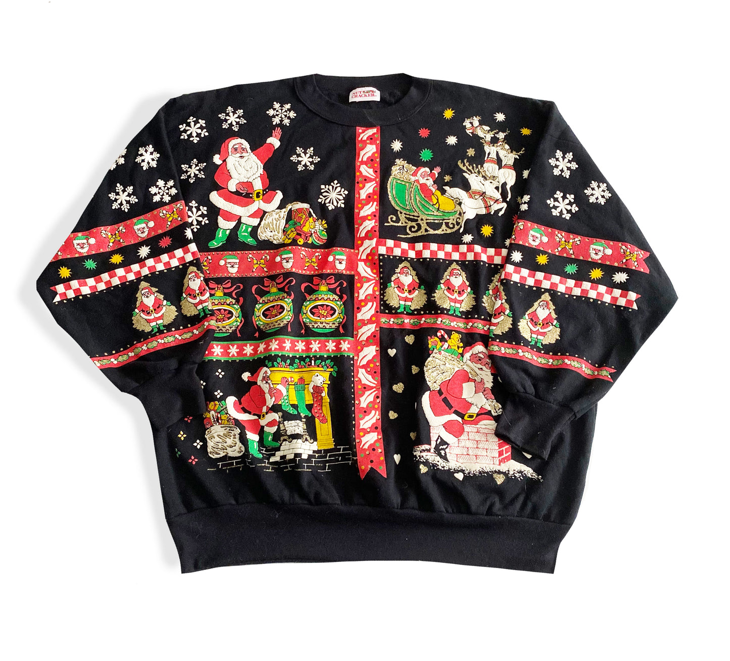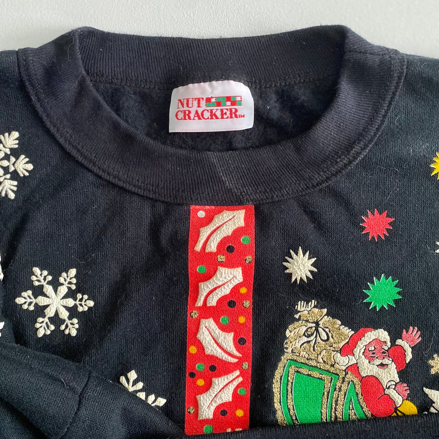 Vintage 1980's - 1990's Christmas crewneck sweatshirt. This apparel featured "puffy" texture, and glitter over some of the imagery.