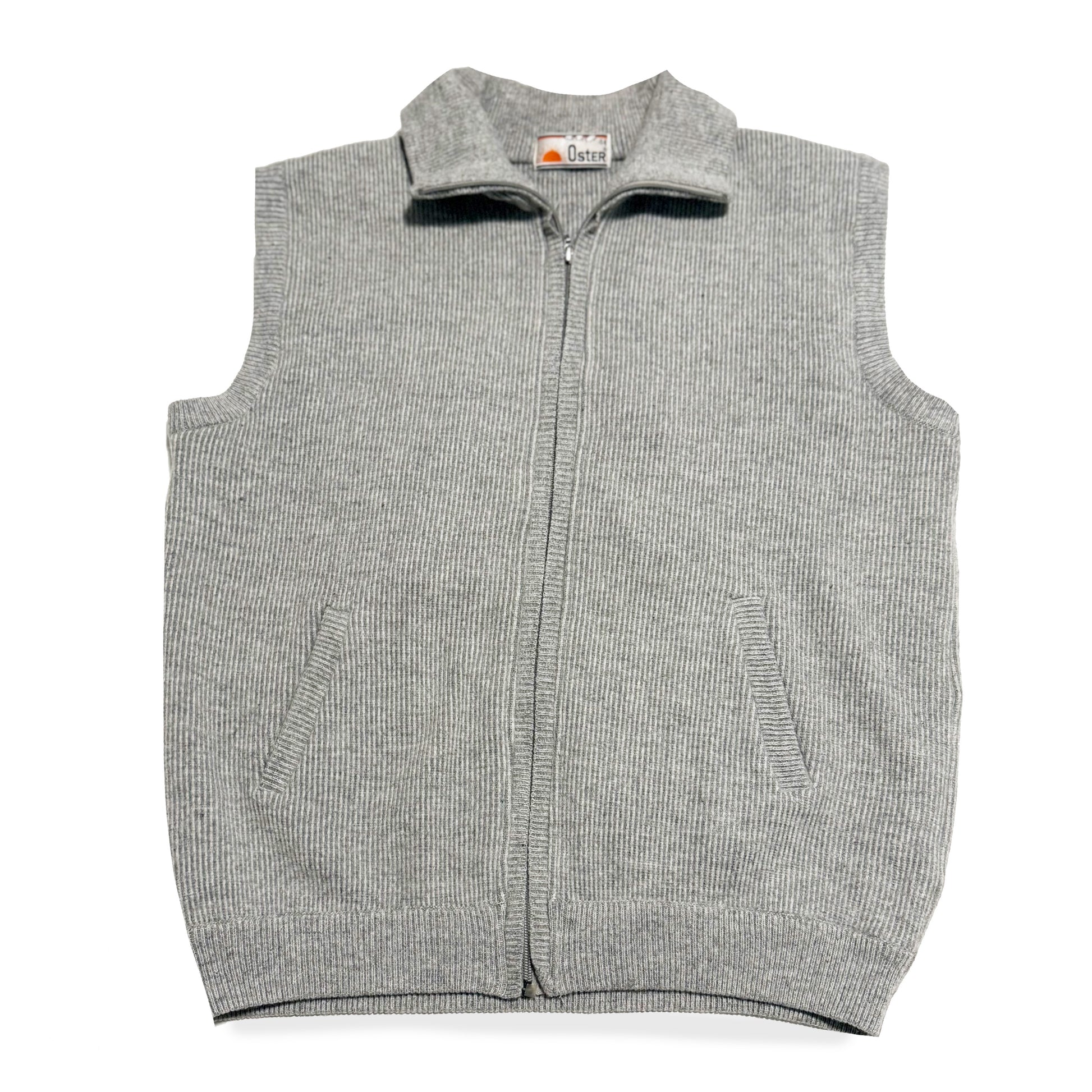 Vintage grey vest, with exterior and interior pockets. There is a small hole on the backside of the apparel.