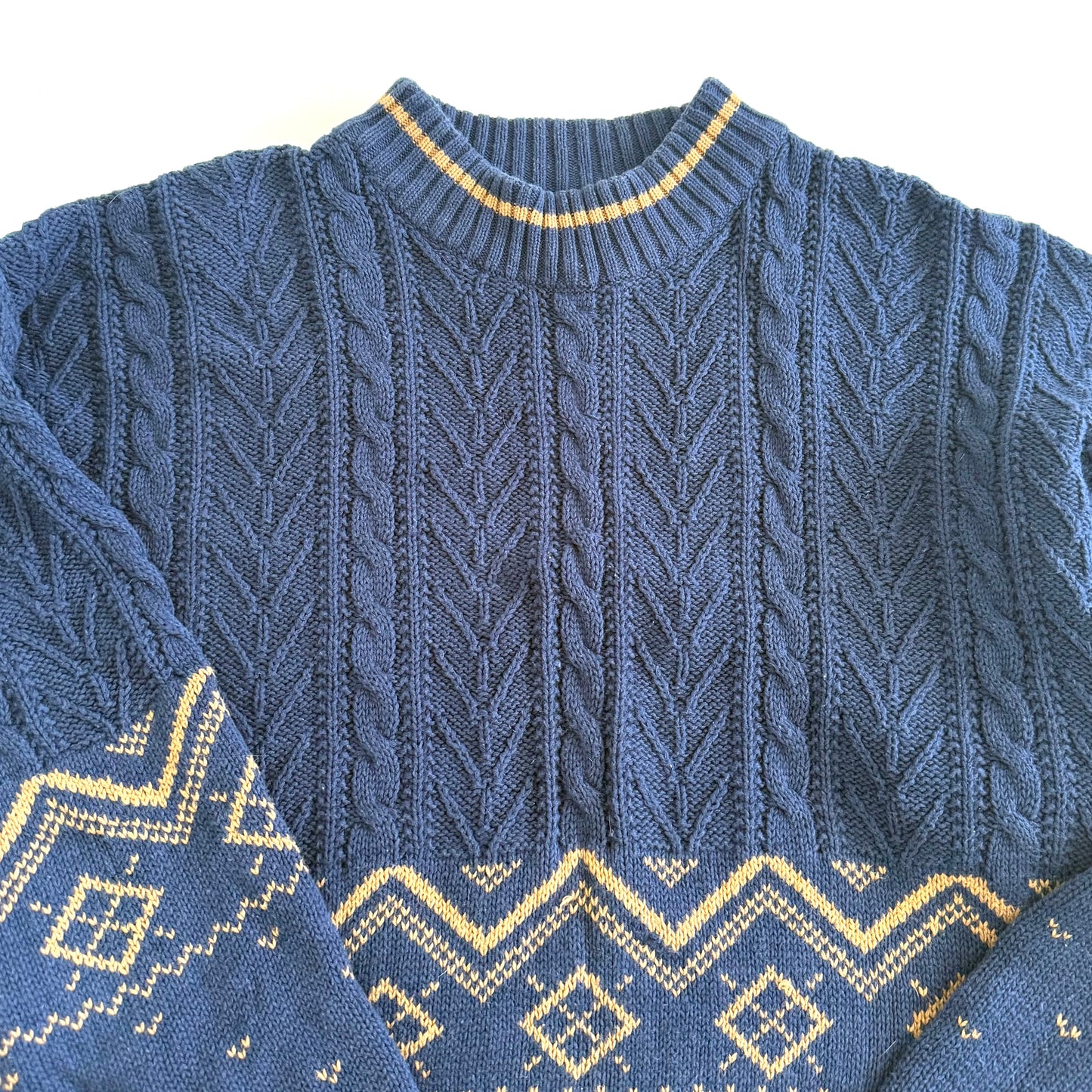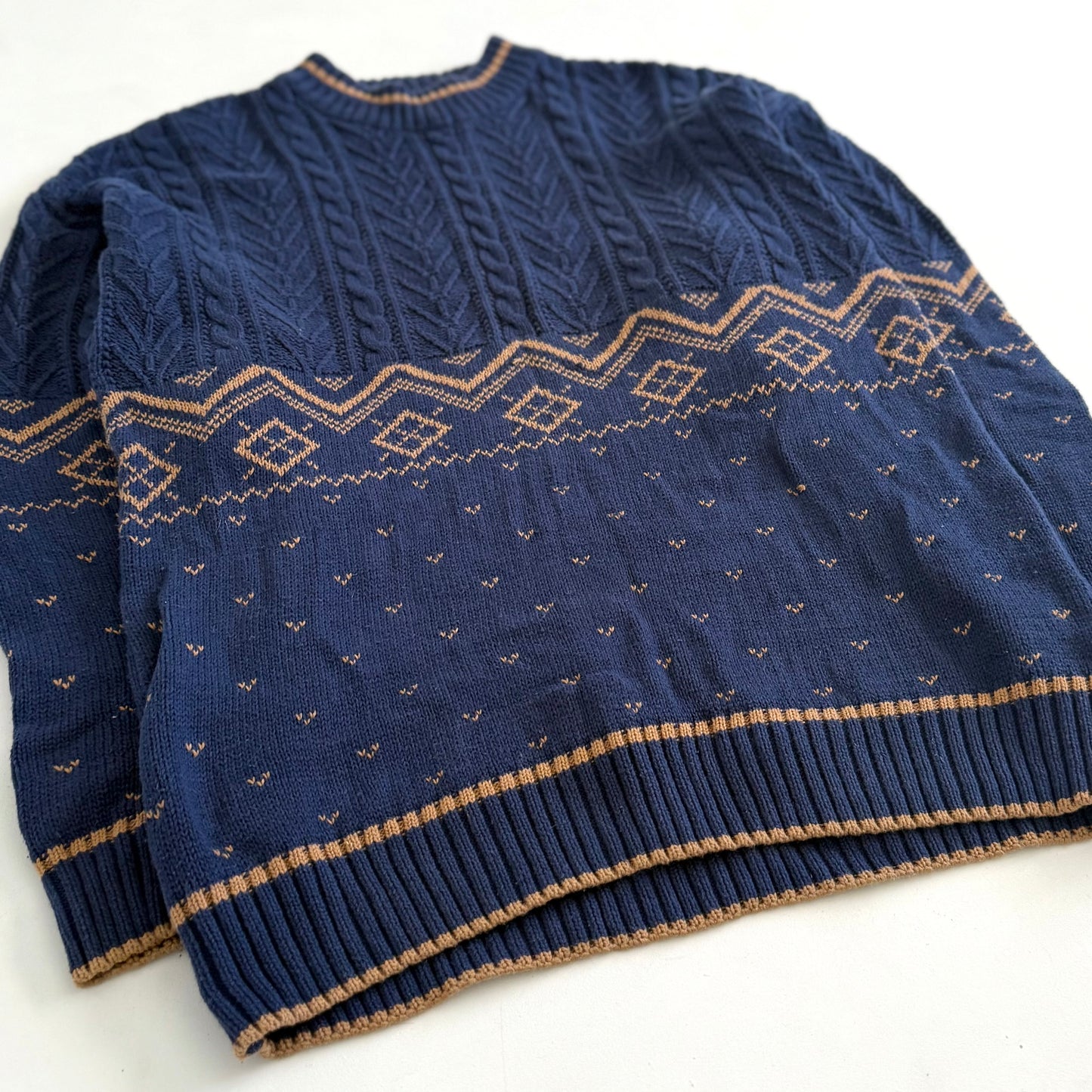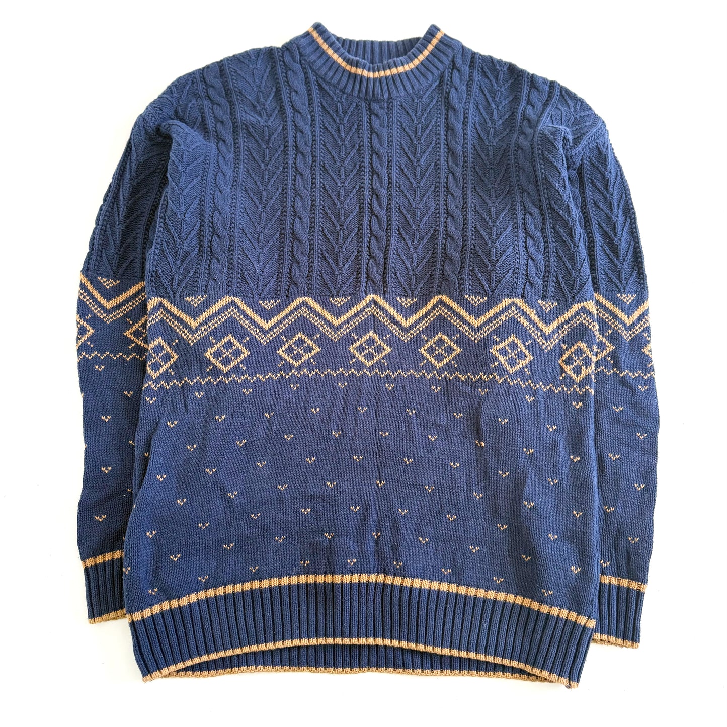 Vintage dark blue and tan grandpa sweater.